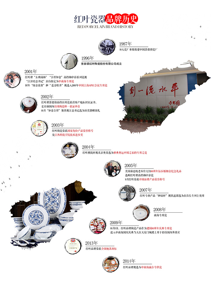 公司于2002年通過ISO9001:2000國際質量體系認證,為拓展國際市場奠定基礎。"紅葉"牌高檔細瓷取得了國家質量監督檢驗檢疫總局頒發的原產地標記注冊證書。