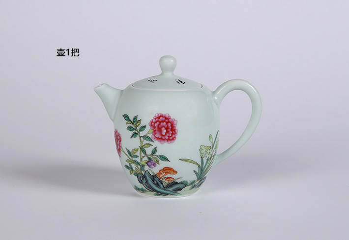 8頭手繪青釉功夫茶具-靈祝富貴