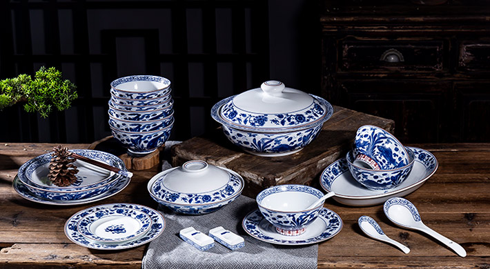 60頭元青花富貴有魚中餐具