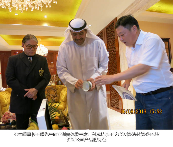 亞洲奧體委主席、科威特親王親切接見了公司董事長,公司首席設計師