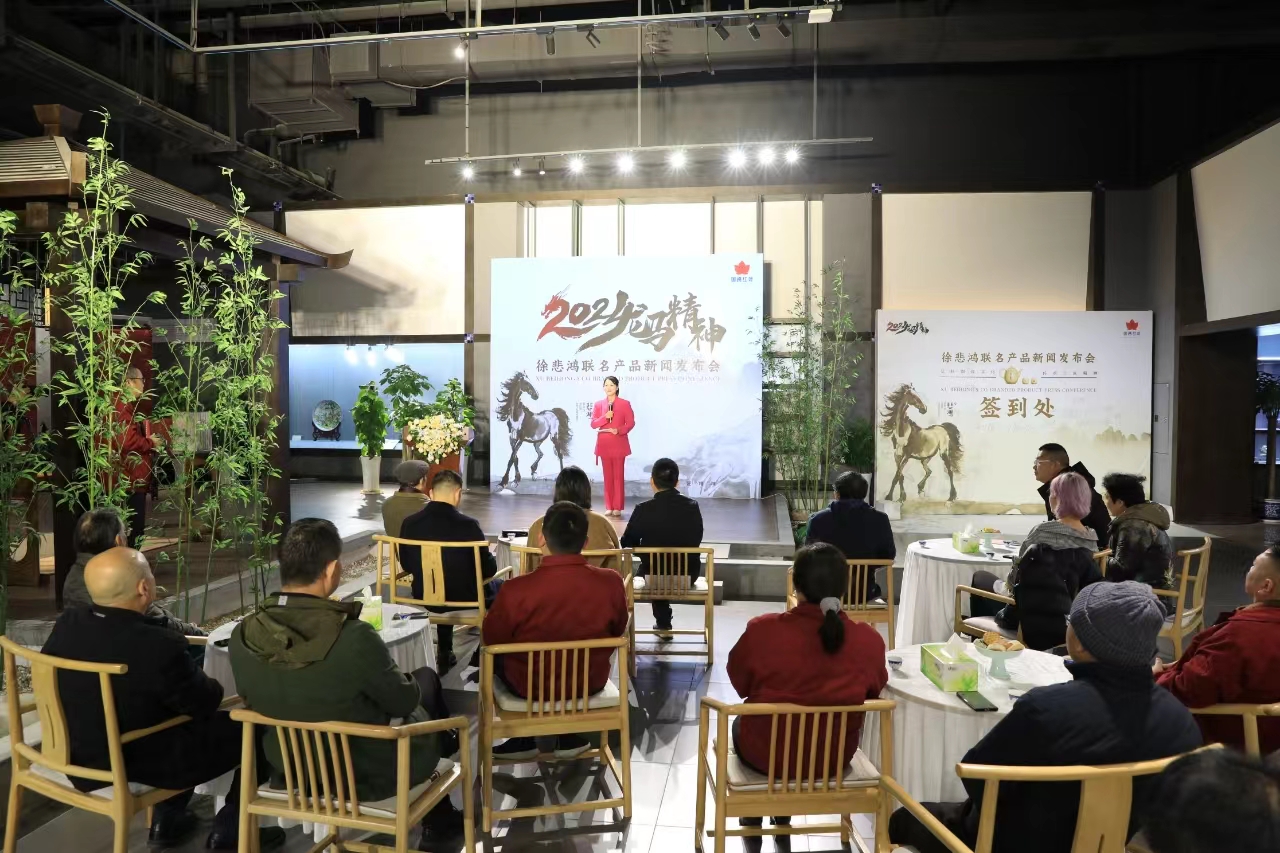 2024年1月3日上午,新年伊始,景陶集團迎來了首個開門紅的強IP合作聯名產品新品發布會,國瓷紅葉與徐悲鴻美術館聯名茶具“春風得意“新品發布會暨徐悲鴻藝術客廳落地景德鎮揭牌儀式在景德鎮陶瓷集團國瓷館舉行。景德鎮市副市長高曉云,原市委常委、原景德鎮陶瓷股份公司黨委書記、董事長、中國工藝美術大師余仰賢,重慶徐悲鴻美術館館長楊凈,重慶徐悲鴻美術館副館長王澤婷,國家一級美術師、清華美院客座教授洪飛,景德鎮陶瓷大學教授、博士生導師曹春生,景德鎮陶瓷大學教授、碩士生導師楊冰,中國工藝美術大師楊淑凝,江西省工藝美術大師潘凱聲,江西省民協主席、江西省工藝美術大師孫立新,景德鎮中外陶瓷藝術協會會長金大翁,景德鎮中外陶瓷藝術協會常務副會長金仲,景德鎮市瓷游記文化發展有限公司創始人范年豐,景德鎮陶瓷集團黨委書記、董事長鄧景揚,景德鎮陶瓷集團黨委副書記、總經理邢浩及景陶集團領導班子成員出席參加發布會。
